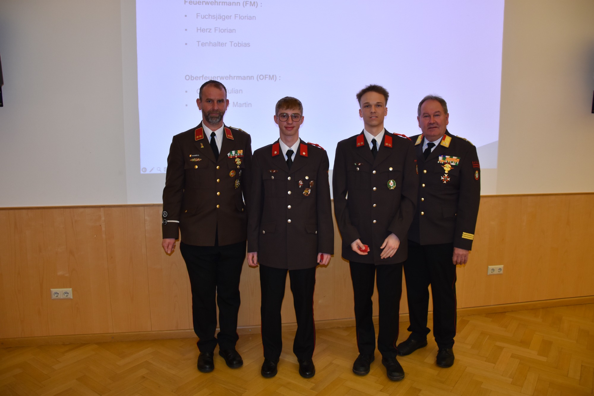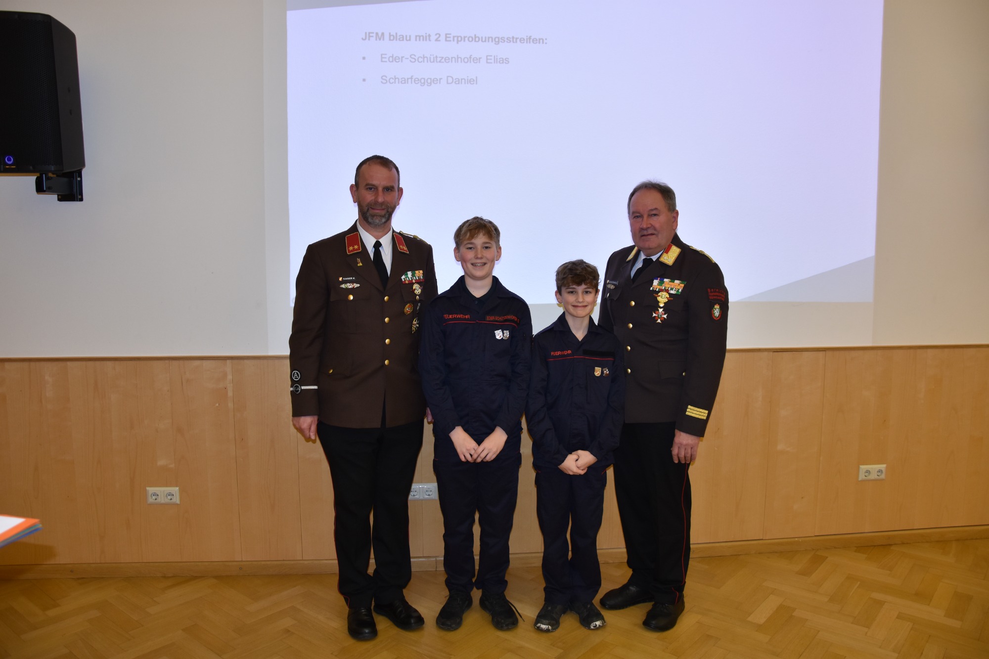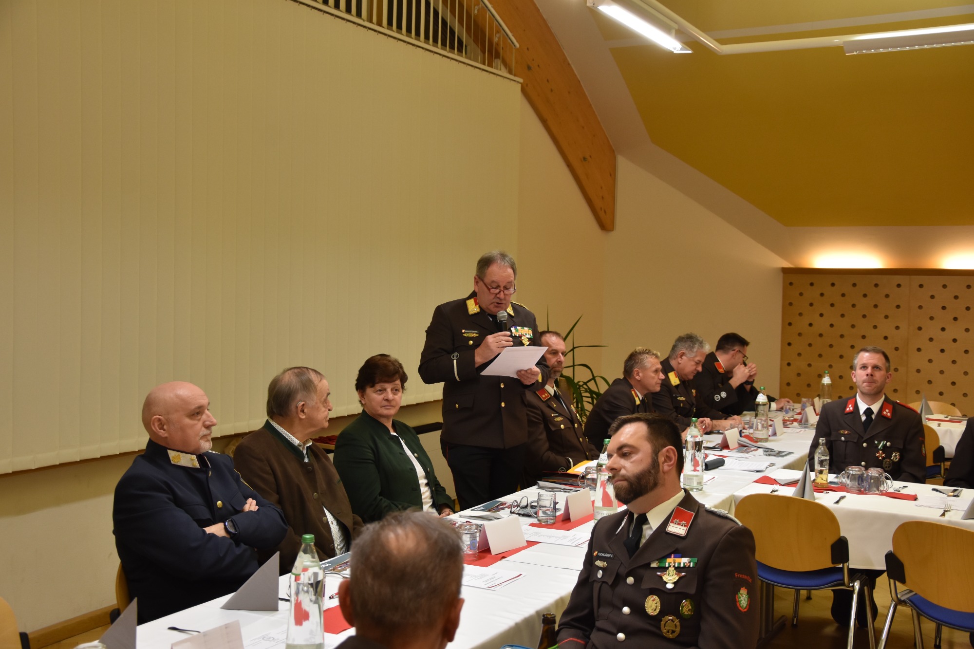 Die Wehrversammlung wird auch immer als würdiger Rahmen für Beförderungen und Auszeichnungen verdienter Kameradinnen und Kameraden genutzt. Besonders hervorzuheben ist die Ernennung von BM d.V. Albert Eder-Schützenhofer zum Ehren-Brandmeister der Verwaltung.