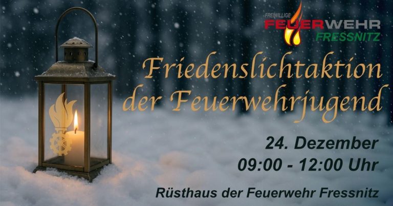 Am 24. Dezember besteht wieder die Möglichkeit das Friedenslicht im Rüsthaus in Fressnitz im Zeitraum von 09:00 bis 12:00 Uhr abzuholen.
